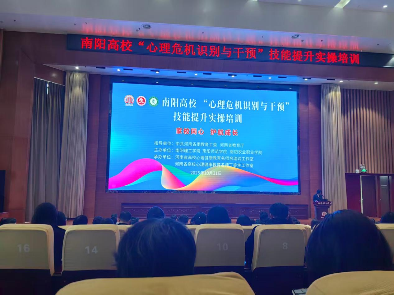 为提升心理健康工作队伍专业能力,10月31日,我校心理健康关爱与教育中心全体人员、各系(部、院)心理专干赴南阳理工学院,参加了由南阳理工学院、南阳师范学院、南阳农业职业学院三校联合组织的“心理危机识别与干预”技能提升实操培训。
